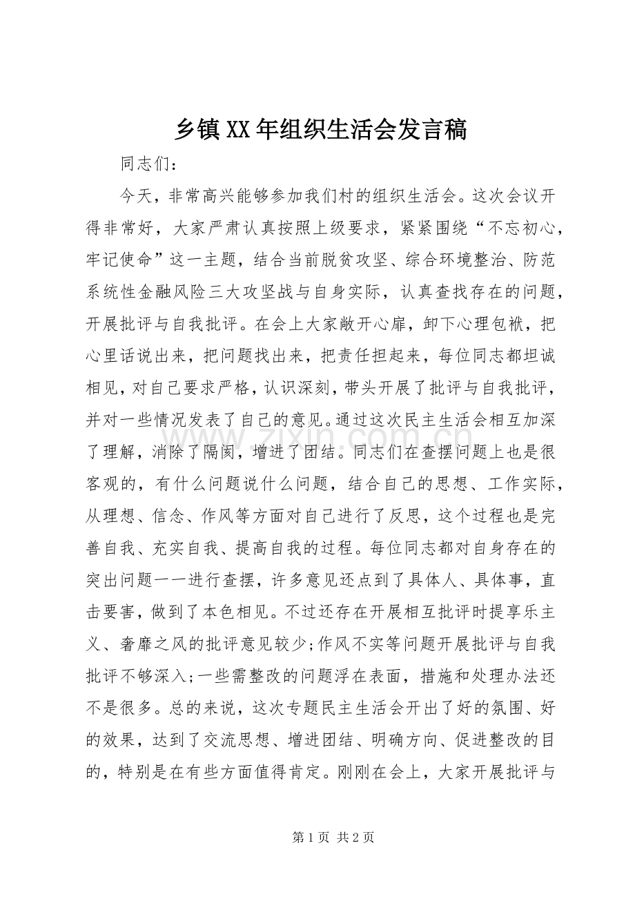 今天,非常高兴能够参加我们村的组织生活会。这次会议开得非常好,大家严肃认真按照上级要求,紧紧围绕“不忘初心,牢记使命”这一主题,结合当前脱贫攻坚、综合环境整治、防范系统性金融风险三大攻坚战与自身实际,认真查找存在的问题,开展批评与自我批评。在会上大家敞开心扉,卸下心理包袱,把心里话说出来,把问题找出来,把责任担起来,每位同志都坦诚相见,对自己要求严格,认识深刻,带头开展了批评与自我批评,并对一些情况发表了自己的意见。通过这次民主生活会相互加深了理解,消除了隔阂,增进了团结。同志们在查摆问题上也是很客观的,有什么问题说什么问题,结合自己的思想、工作实际,从理想、信念、作风等方面对自己进行了反思,这个过程也是完善自我、充实自我、提高自我的过程。每位同志都对自身存在的突出问题一一进行查摆,许多意见还点到了具体人、具体事,直击要害,做到了本色相见。不过还存在开展相互批评时提享乐主义、奢靡之风的批评意见较少;作风不实等问题开展批评与自我批评不够深入;一些需整改的问题浮在表面,措施和处理办法还不是很多。总的来说,这次专题民主生活会开出了好的氛围、好的效果,达到了交流思想、增进团结、明确方向、促进整改的目的,特别是在有些方面值得肯定。刚刚在会上,大家开展批评与自我批评是动了真感情,问题查摆得很深、很实,但是成效还是要体现在整改落实上。每位同志的对照检查材料中都有了明确的整改方向和措施,希望大家都能够按照要求,扎实整改,要防止出现“闯关”思想,决不能认为民主生活会开完了就万事大吉,必须以实际行动兑现承诺、以实际成效取信于民,对查摆出来的问题一定要紧抓不放,做到事事有回音,件件有落实。借此机会,我在这里提几点希望与大家共勉。