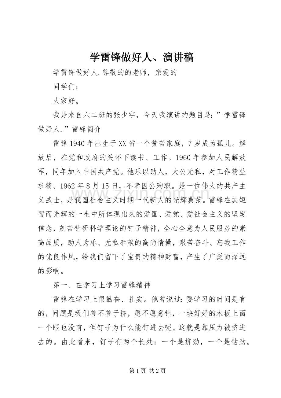 学雷锋做好人、演讲稿