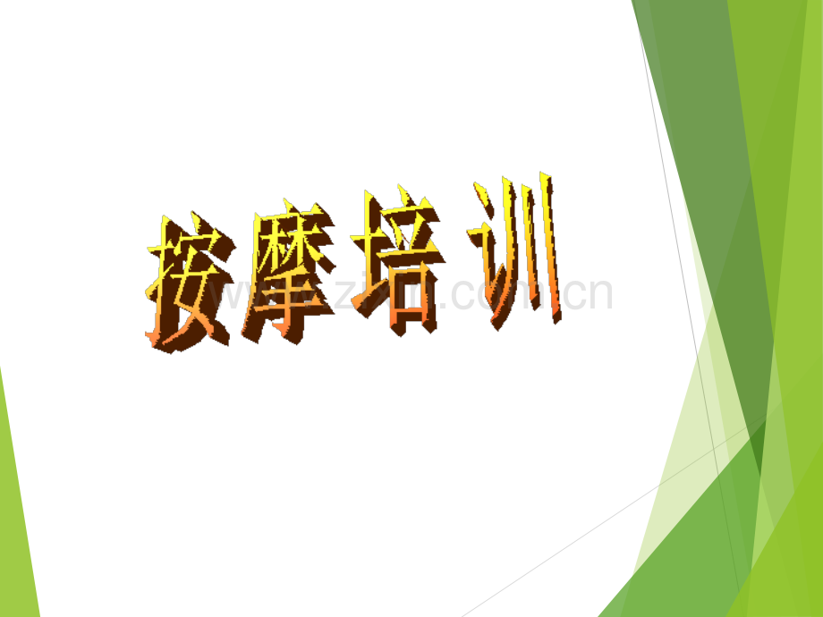 按摩的概念按摩的概念按摩又称推拿,是以中医的脏腑、经络学说中医的脏腑、经络学说为理论基础,并结合西医的解剖和病理诊断西医的解剖和病理诊断,而用手法手法作用于人体体表的特定部位以调节机体生理、病理状况,达到理疗目的的方法,从性质上来说,它是一种物理的治疗方法。从按摩的治疗上,可分为保健按摩、运动按摩和医疗按摩保健按摩、运动按摩和医疗按摩。按摩的历史按摩的历史我国史记上记载秦代名医扁鹊,曾用按摩疗法,治疗虢太子的尸厥症。秦代到今已两千多年,可见按摩在我国已有悠久的历史了。我国最早的按摩专书,当推黄帝按摩经(十卷,见汉书。艺文志),可借早已亡佚。但在现存的古典医书黄帝内经里,许多地方,谈到按摩。如血气形志篇“形数惊恐,经络不通,病生于不仁。可见古代很早就已掌握用按摩疗法来治疗肢体麻痹不仁、痿症、厥症、湿症和寒热等症。按摩的作用按摩的作用按摩能调整人体的脏腑机按摩能调整人体的脏腑机能,消除人们因为各种原能,消除人们因为各种原因引起的疲劳,减轻或消因引起的疲劳,减轻或消除因为组织受损而带来的除因为组织受损而带来的疼痛,从而改变机体的血疼痛,从而改变机体的血液循环,促进损伤组织的液循环,促进损伤组织的修复。修复。按摩的禁忌按摩的禁忌过饥或过饱时不宜按摩,一般情况饭前半小时或饭后一小时可进行;对于过度饮酒,过度疲劳及妇女怀孕期或行 经期,慎用按摩;精神病人、有严重心脏衰竭、有肾病的人禁 忌按摩;急性感染、创伤、骨折禁忌按摩;对于出血性倾向的禁忌按摩;皮肤病局部禁忌按摩;幼儿头部上不能乱按。按摩的手法要领按摩的手法要领由轻到重,由慢到快,由浅到深,由表到里,由轻到重,由慢到快,由浅到深,由表到里,循序渐进,有一个适应的过程;腰骶、臂部及四肢外侧可用稍重手法,前胸、腹部及四肢腰骶、臂部及四肢外侧可用稍重手法,前胸、腹部及四肢内侧宜采用轻手法;内侧宜采用轻手法;手型手型:在使用手法时,要注意自己双手的动作及持握是 否合理、正确;方向方向:顺经络、顺时针、轻手法为补,反之为泻。揉法揉法拿法拿法推法推法拨法拨法震法震法拍打法和捶法拍打法和捶法按法按法按法按法一一、方法与步骤:方法与步骤:1.用指、掌、肘或肢体其他部分着力于皮 肤上。2.由轻到重地逐渐用力按压在被按摩的部位或穴位上,停留一段时间,再由重到轻地缓缓放松。3.按法中以指按法和掌按法两种最为常用。拇指或示、中、环指面着力,按压体表某一部位或穴位,称指按法。用单掌或双掌掌面或掌根或双掌重叠按压体表某一部位,称掌按法。按法按法人道人道 博爱博爱 奉献奉献二、二、动作要领动作要领:1.按压着力部位要紧贴体表不可移动,操作时用力方向要与体表垂直,由轻逐重,稳而持续,使力达组织深部。2.拇指按穴位要准确,用力以病人有酸、胀、热、麻等感觉为度三、三、主要作用:主要作用:具有疏筋活络,放松肌肉,消除疲劳,活血止痛,整形复位等作用。拇指按法适用于经络穴位,掌按法多用于腰背部、肩部及四肢肌肉僵硬或发紧、也用于关节处,如腕关节、踝关节等。用指端、肘尖、足跟等点按穴位,是穴位按摩常用的手法。揉法揉法一一、方法与步骤:、方法与步骤:1.用手掌、掌根、大鱼际、小鱼际、拇指或四指指腹部分着力于皮肤上。2.作圆形或螺旋形的揉动,以带动该处的皮下组织随手指或掌的揉动而滑动。揉法揉法二、二、动作要领:动作要领:揉动时手指或掌要紧贴在皮肤上,不要在皮肤上摩动,手腕要放松,以腕关节连同前臂或整个手臂作小幅度的回旋活动,不要过分牵扯周围皮肤。三、三、主要作用:主要作用:具有加速血液循环、改善局部组织的新陈代谢、活血散瘀缓解痉挛、软化瘢痕、缓和强手法刺激和减轻疼痛的作用。全掌或掌根揉,多用于腰背部和肌肉肥厚部位。拇指揉法多用于关节、肌腱部。拇、中指端揉是穴位按摩常用的手法。人道人道 博爱博爱 奉献奉献推法推法一、方法与步骤一、方法与步骤:1.用指或掌等部位着力于被按摩的部位上。2.根据推法用力的大小,可分为轻推法和重推法。选定力度后进行单方向的直线推动。一般推35次。推法推法二、动作要领:二、动作要领:1.轻推法时用的压力较轻;重推法时用的压力较重。作全掌重推法时,四指并拢,拇指分开,要求掌根着力,虎口稍抬起,必要时可用另一手掌重叠按压于手背上,双手同时向下加压,沿着淋巴流动的方向向前推动。2.指、掌等着力部分要紧贴皮肤,用力要稳,推进的速度要缓慢而均匀,但不要硬用压力,以免损伤皮肤。三、主要作用:三、主要作用:轻推法具有镇静止痛,缓和不适感等作用,用于按摩的开始和结束时,以及插用其他手法之间。重推法具有疏通经络,理筋整复,活血散瘀,缓解痉挛,加速静脉血和淋巴液回流等作用。人道人道 博爱博爱 奉献奉献拨法拨法一、方法与步骤方法与步骤:1用双手拇指或单拇指的指端陷压于一定部位上。2适当用力作与韧带或肌纤维垂直方向的来回拨动。二、二、动作要领动作要领:操作时拇指端要深按于韧带或肌肉、肌腱的一侧,然后做与韧带和肌纤维成垂直方向的拨动,好象弹拨琴弦一样。也可沿筋内的一端依次向另一端移动弹拨,使局部有酸胀感,并能耐受为度。三、主要作用:三、主要作