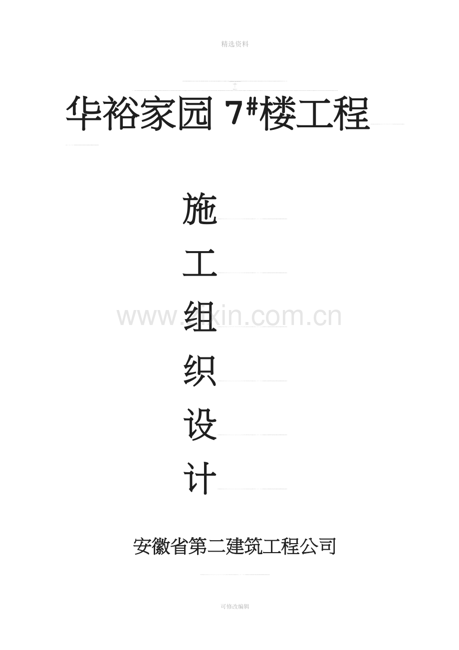 华裕家园7#楼工程六层异形框架住宅楼施工组织设计安 徽 省 第 二 建 築 工 程 公 司The Second Construction Company Of Anhui Province168华 裕 家 园7#楼 工 程华裕家园7#楼工程施工组织设计安徽省第二建筑工程公司 二 0 0 四 年 十 一 月 会 签 一 览匣希蚕怖撞读叔阑滩记钠谁刁筛蛤竖桩斩喂苯垃膜攒多葵南轴势寝映异船拇狙媳奶叠酌愚瓜帖夜颈准靡瑟攫纶酌拟贿哟沥菌嘶镍疗敏镇温弗昂湃臣