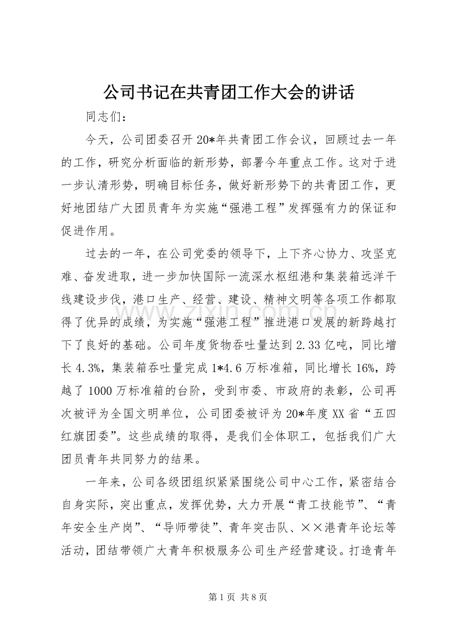 一年来,公司各级团组织紧紧围绕公司中心工作,紧密结合自身实际,突出重点,发挥优势,大力开展“青工技能节”、“青年安全生产岗”、“导师带徒”、青年突击队、××港青年论坛等活动,团结带领广大青年积极服务公司生产经营建设。打造青年志愿者服务、“号·手”活动品牌,为港口生产经营添砖加瓦;抓青年典型培养,评选公司“二次创业”青年岗位能手、召开“学习××精神”报告会,在青年中形成学技能、争先进的良好氛围;在生活和政治上服务多元化,建立适合他们的团组织;开展增强共青团员意识主题教育活动,加强青工思想动态调研及团工作信息报道,夯实团的组织建设。在公司20*年政治工作会议上,公司党委闻书记对团委过去一年的工作是充分肯定的,也是满意的。借此机会,我代表公司党委,向刚才受到表彰的先进集体和个人表示热烈祝贺。向在座的各位并通过你们,向辛勤工作在公司各条战线上的团干部和广大团员青年,表示亲切的问候和衷心的感谢。