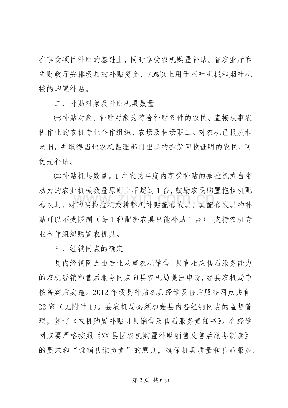 为切实做好我县2012年农业机械购置补贴工作,根据《省农业厅省财政厅关于印发省2012年农机购置补贴实施方案的通知》(农发〔2012〕8号)精神,结合我县实际,特制定本方案。