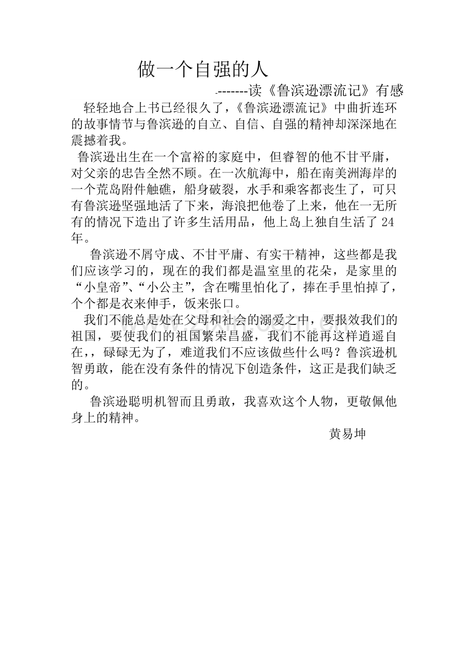 我们不能总是处在父母和社会的溺爱之中,要报效我们的祖国,要使我们的祖国繁荣昌盛,我们不能再这样逍遥自在,,碌碌无为了,难道我们不应该做些什么吗?鲁滨逊机智勇敢,能在没有条件的情况下创造条件,这正是我们缺乏的。