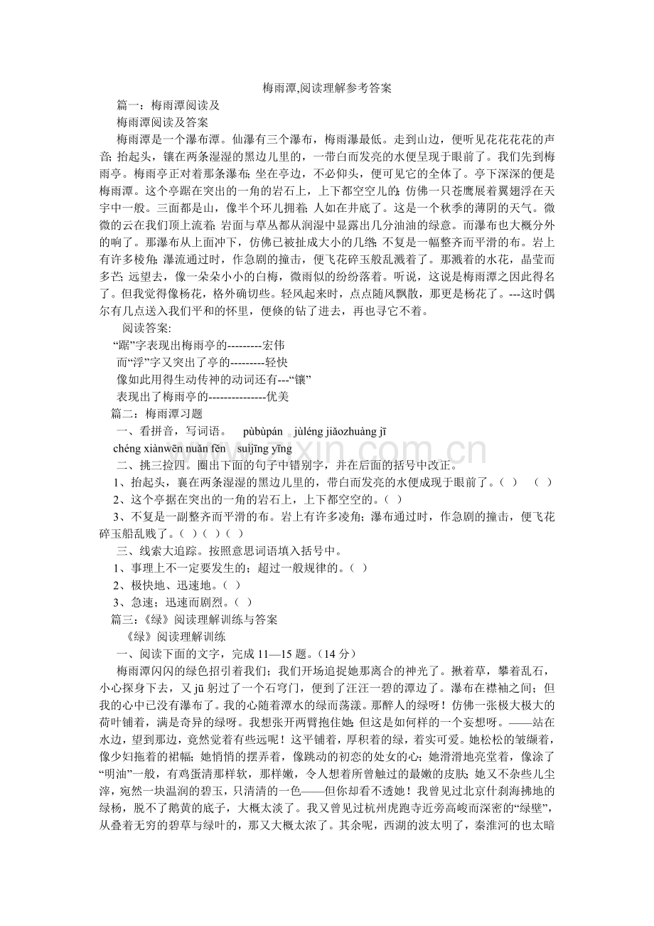 篇一:梅雨潭阅读及