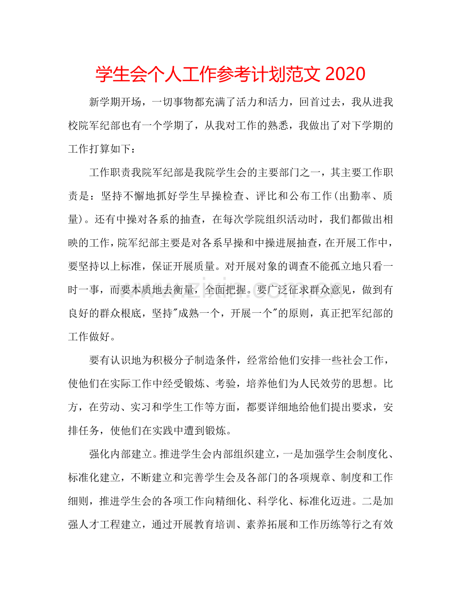 学生会个人工作参考计划范文2020