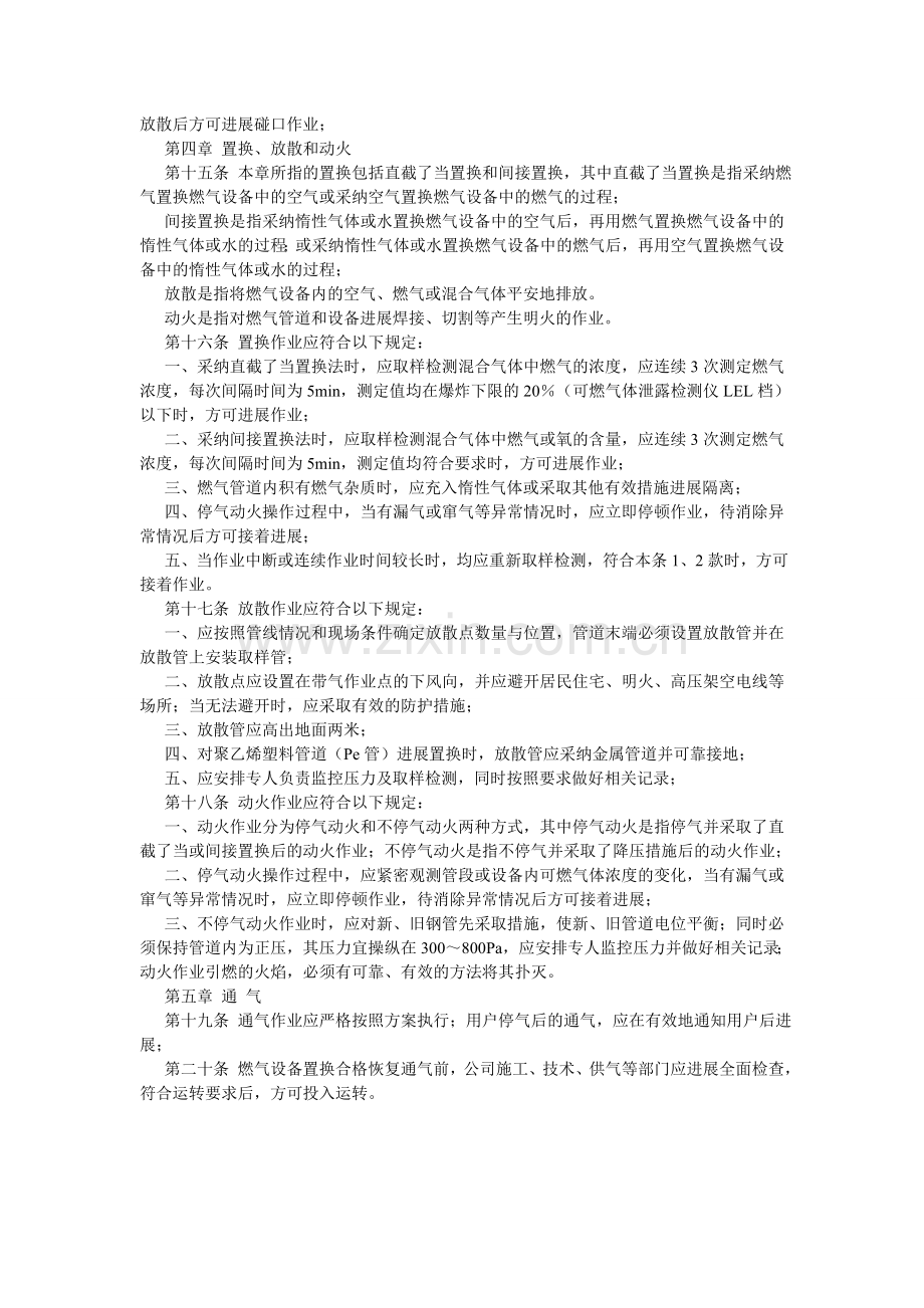第十九条 通气作业应严格按照方案执行;用户停气后的通气,应在有效地通知用户后进展;