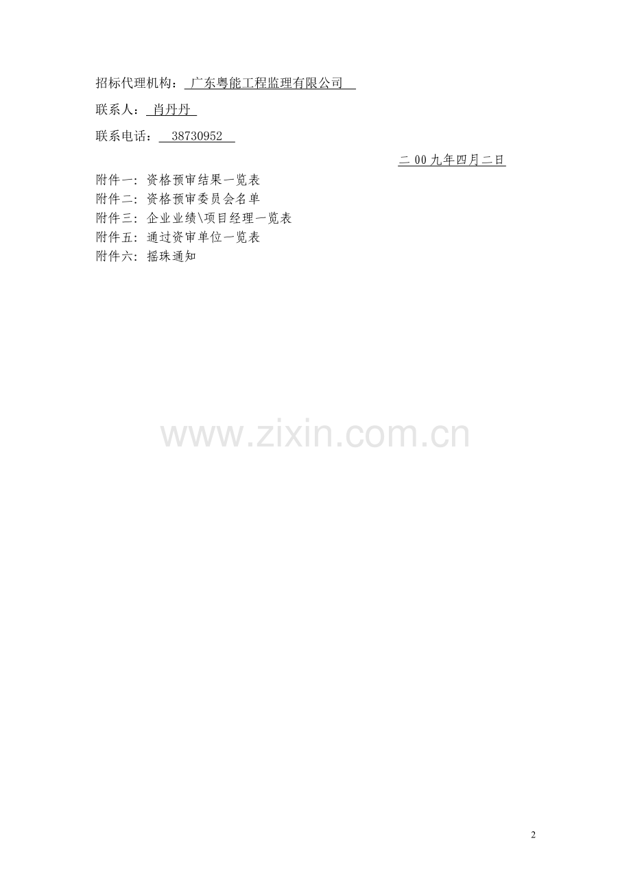 我单位依照相关规定依法组建资格预审委员会。于2009年4月2日在交易中心南沙交易部进行资格预审。