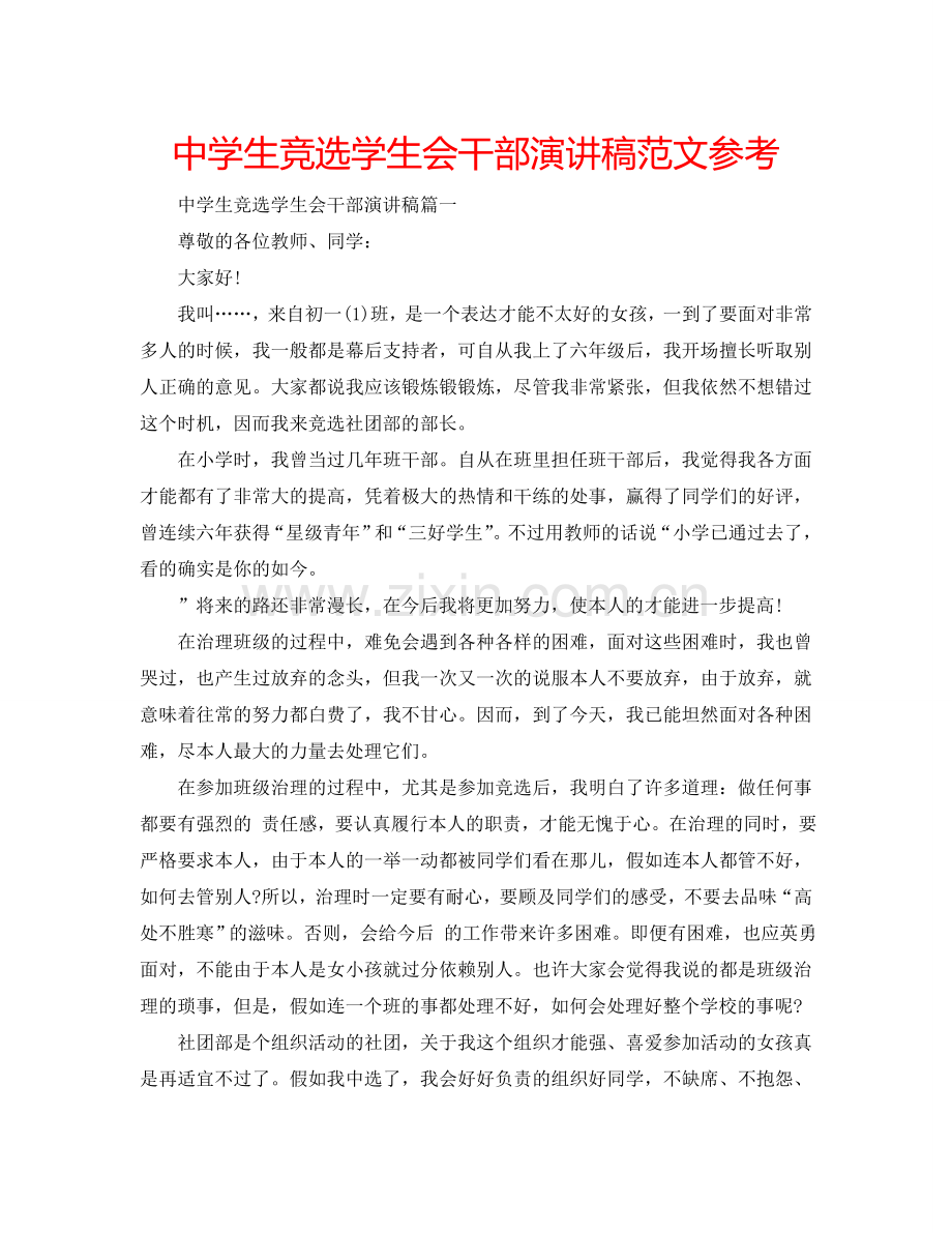 中学生竞选学生会干部演讲稿篇一