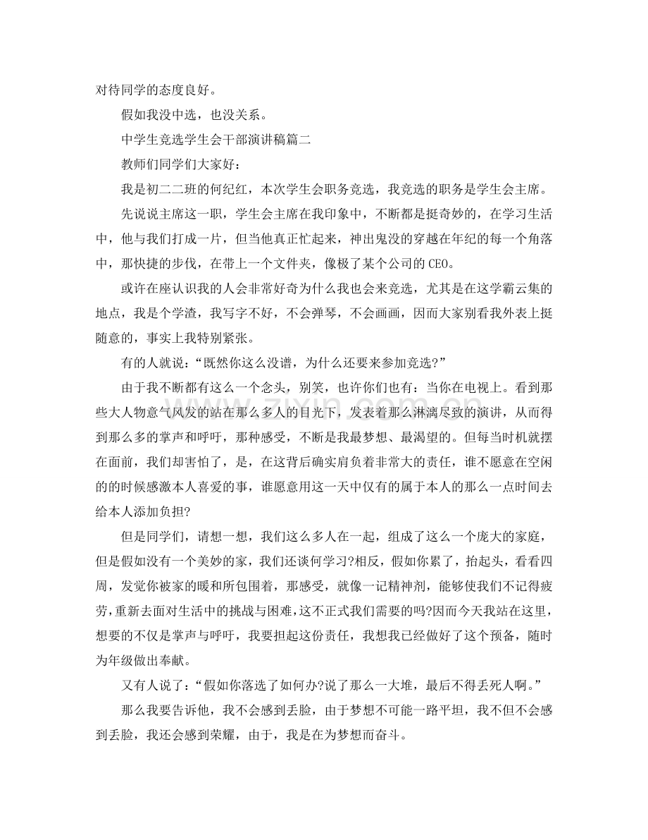 中学生竞选学生会干部演讲稿篇三