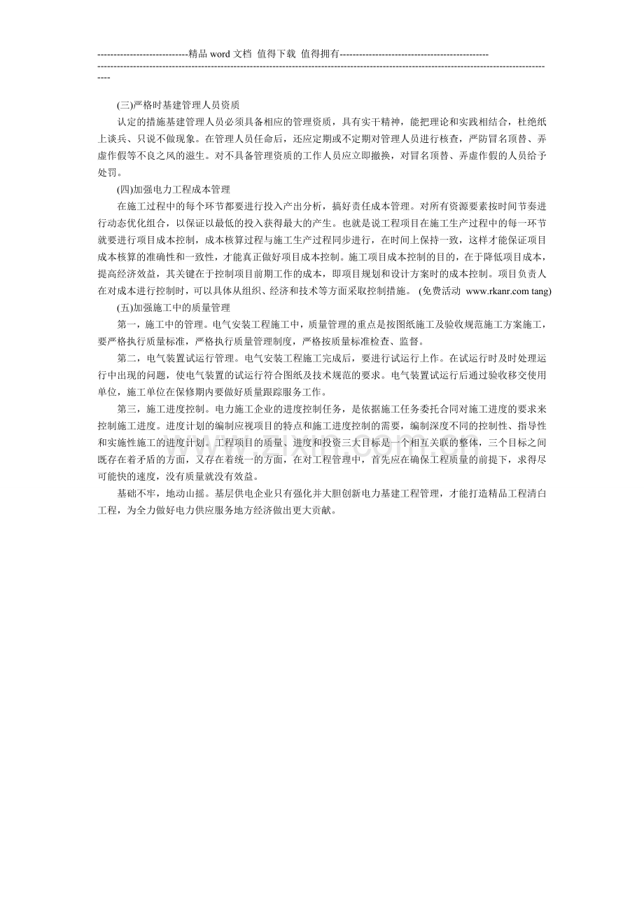 基础不牢,地动山摇。基层供电企业只有强化并大胆创新电力基建工程管理,才能打造精品工程清白工程,为全力做好电力供应服务地方经济做出更大贡献。