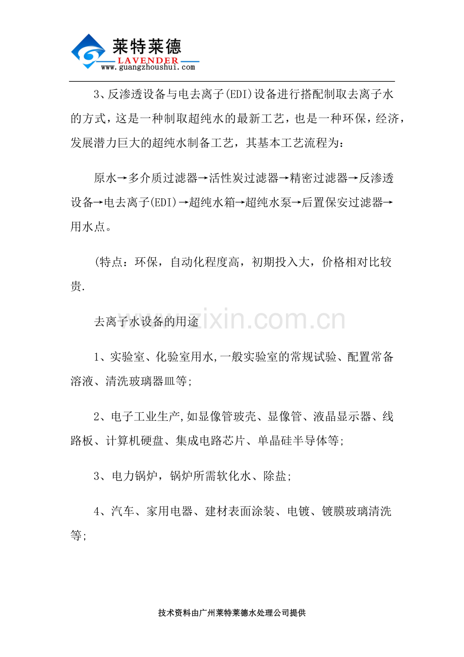 3、反渗透设备与电去离子(EDI)设备进行搭配制取去离子水的方式,这是一种制取超纯水的最新工艺,也是一种环保,经济,发展潜力巨大的超纯水制备工艺,其基本工艺流程为: