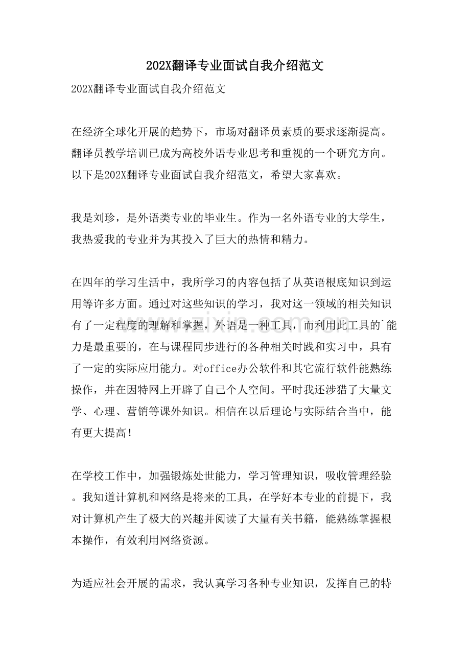 在经济全球化开展的趋势下,市场对翻译员素质的要求逐渐提高。翻译员教学培训已成为高校外语专业思考和重视的一个研究方向。以下是202X翻译专业面试自我介绍范文,希望大家喜欢。