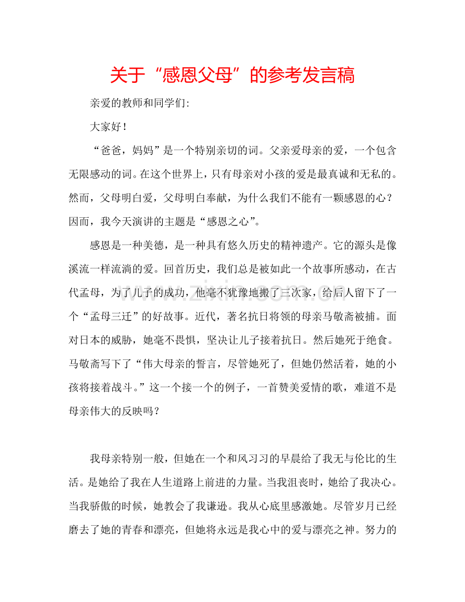 “爸爸,妈妈”是一个特别亲切的词。父亲爱母亲的爱,一个包含无限感动的词。在这个世界上,只有母亲对小孩的爱是最真诚和无私的。然而,父母明白爱,父母明白奉献,为什么我们不能有一颗感恩的心?因而,我今天演讲的主题是“感恩之心”。