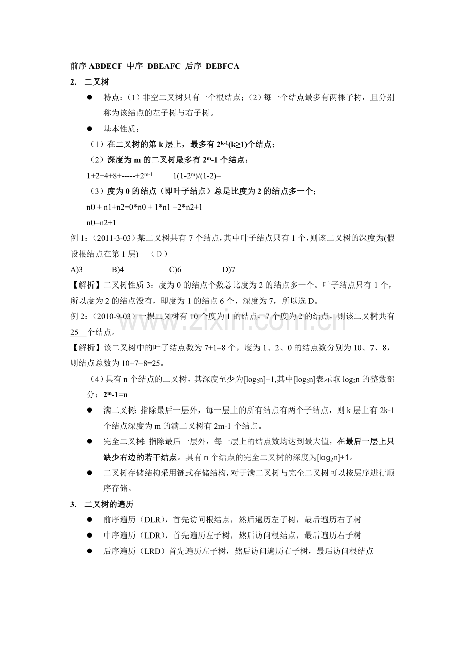 (1)在二叉树的第k层上,最多有2k-1(k≥1)个结点;