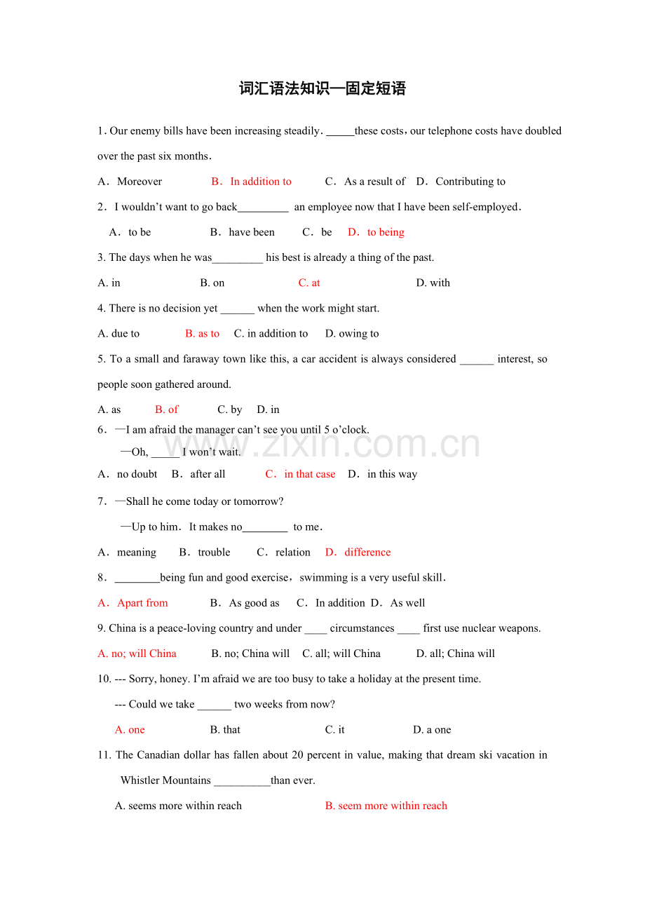 词汇语法知识—固定短语