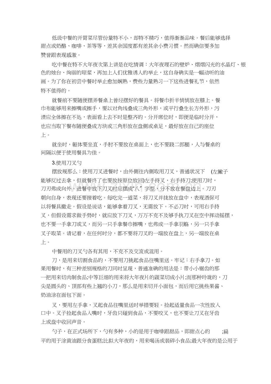 知识。去低级的中餐厅,男士要穿整齐;密斯要穿晚制服或套装跟有跟的鞋子,
