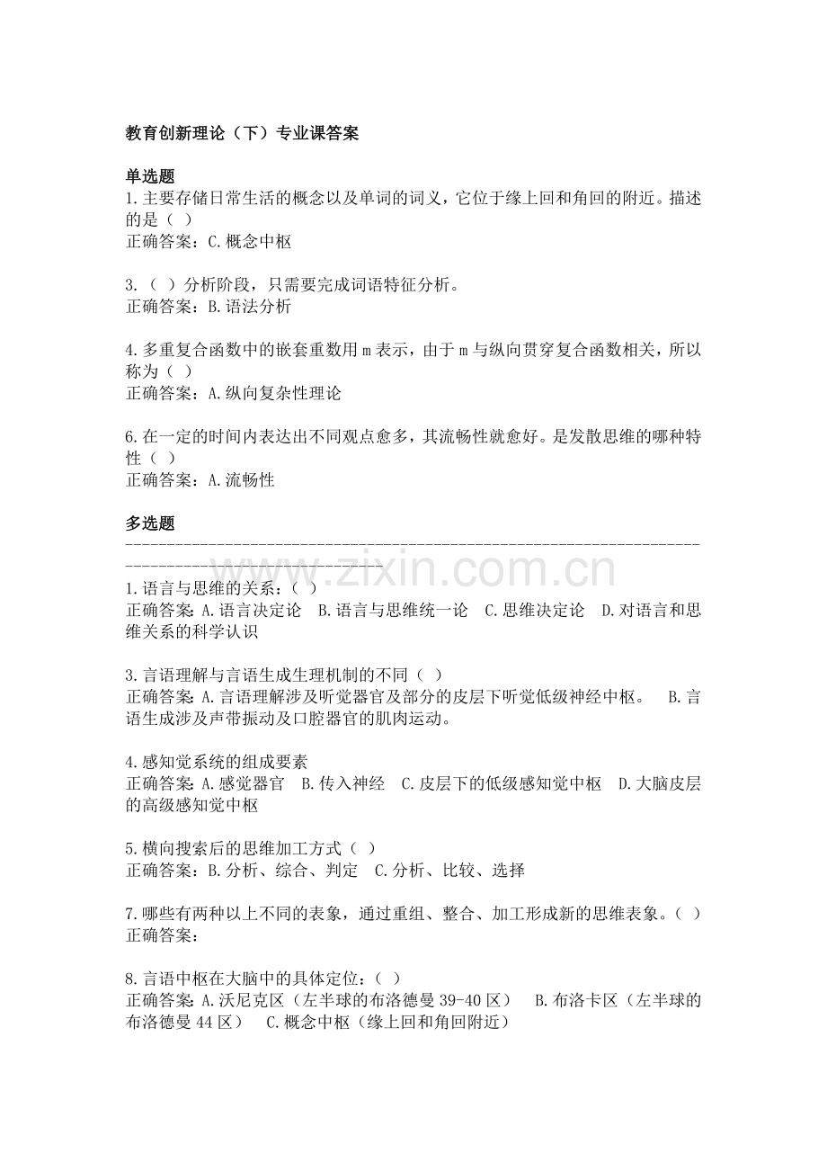 教育创新理论(下)专业课答案