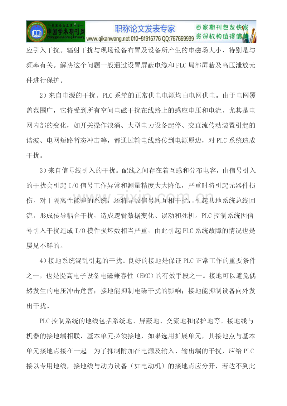 [2]张壹,浅谈PLC控制系统的抗干扰设计[J].商场现代化,2007,4.