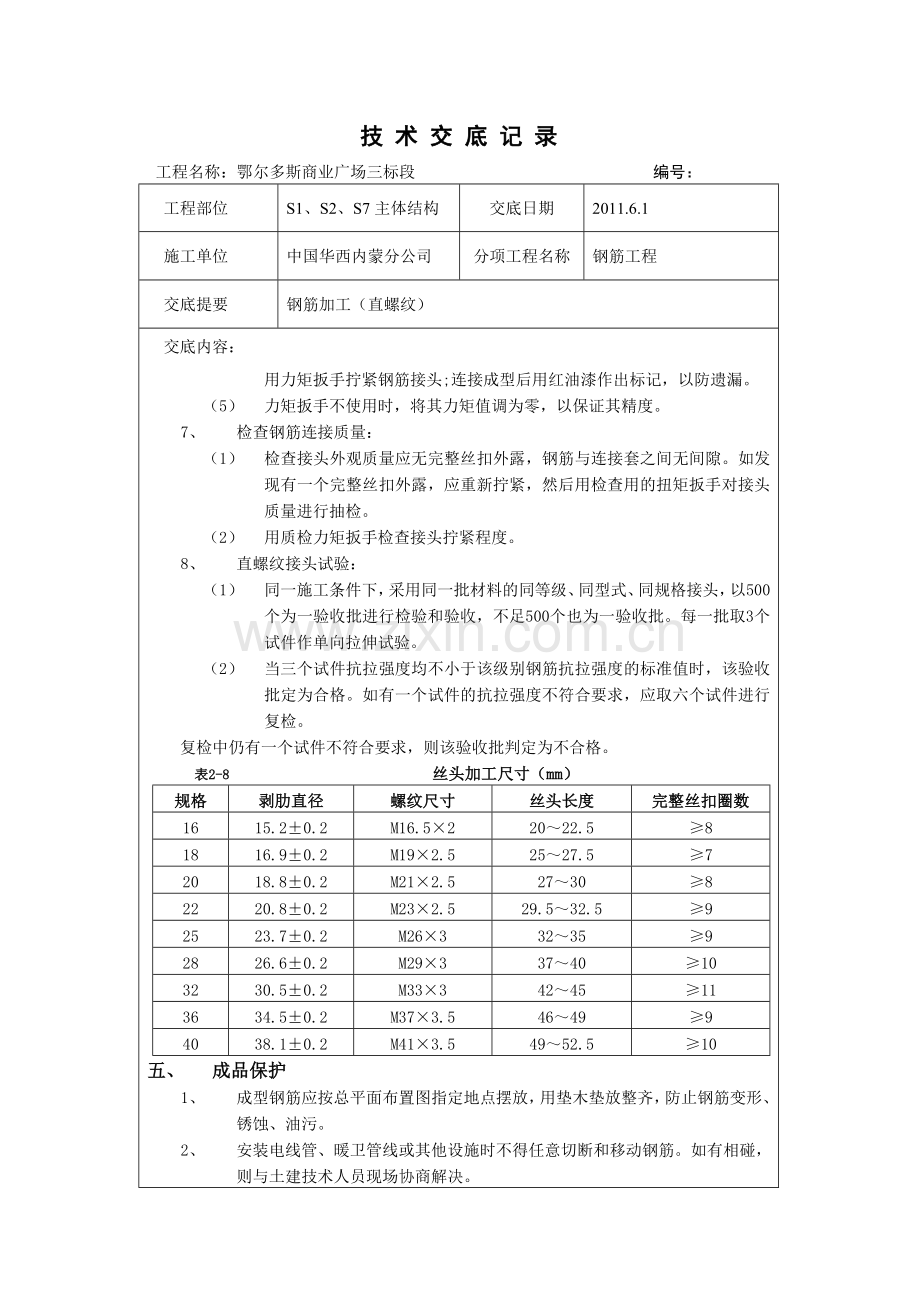 (1) 钢筋丝头经检验合格后应保持千净无损伤。