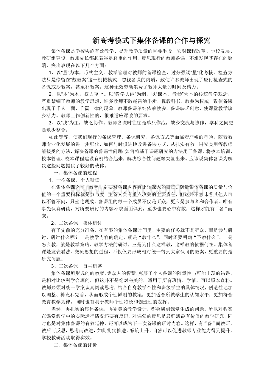 集体备课是学校实施有效教学、提升教学质量的重要手段,它对课程改革、学校发展、教研组建设、教师成长都起着举足轻重的作用。反思现行的教师备课,不难发现其存在的弊端,突出表现在以下几个方面: