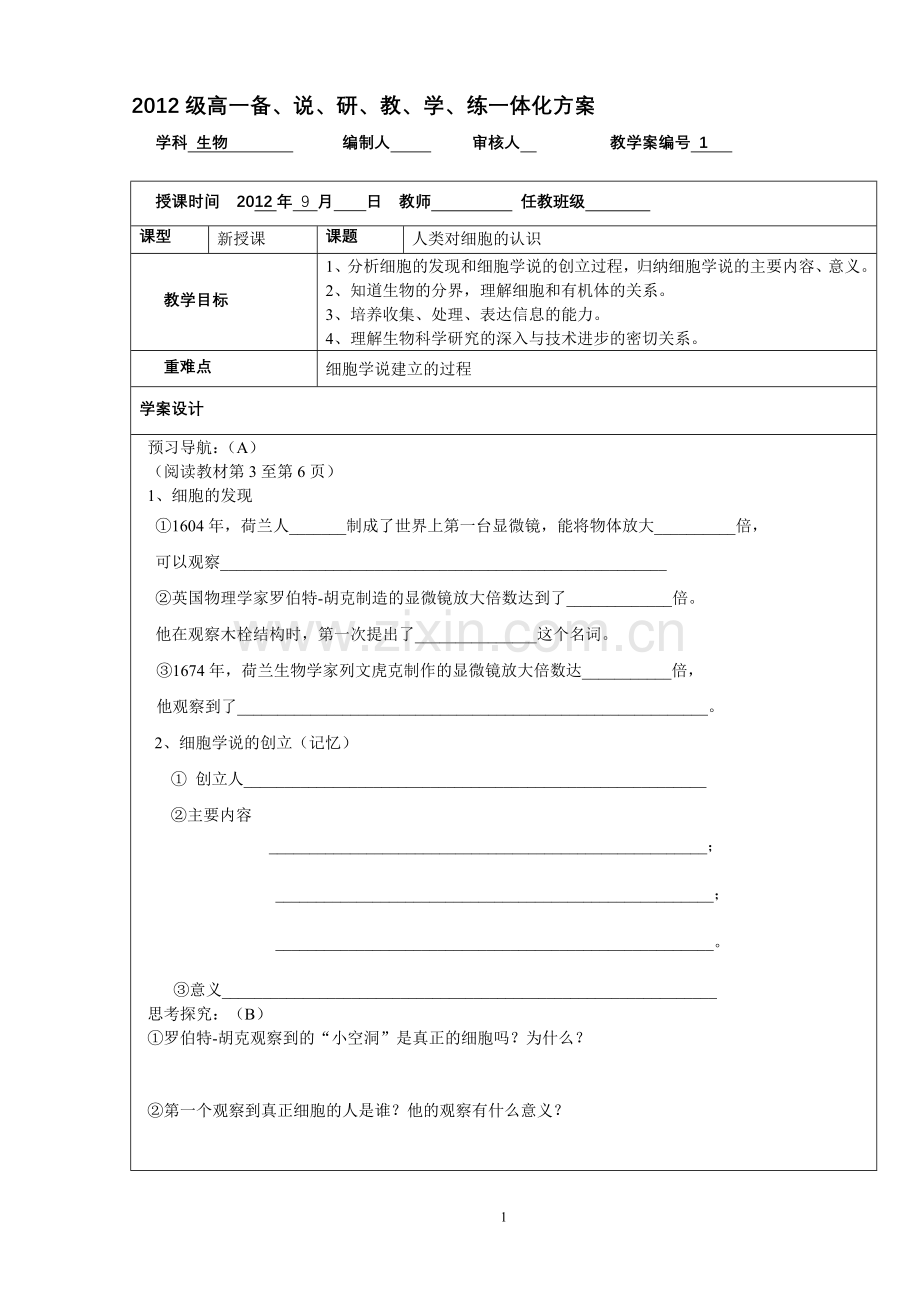 1、分析细胞的发现和细胞学说的创立过程,归纳细胞学说的主要内容、意义。