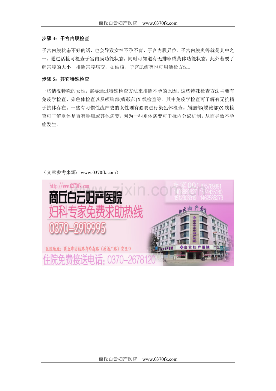 推测有无排卵及预测排卵期:可通过基础体温测定以及宫颈粘液检查或激素测定来推测有无排卵及预测排卵期。若排卵正常,则应对输卵管通畅进行检查。检查输卵管通畅可通过输卵管通气或通液检查、输卵管造影检查的方法,输卵管造影对输卵管欠通畅者(如轻度粘连)兼有治疗作用。