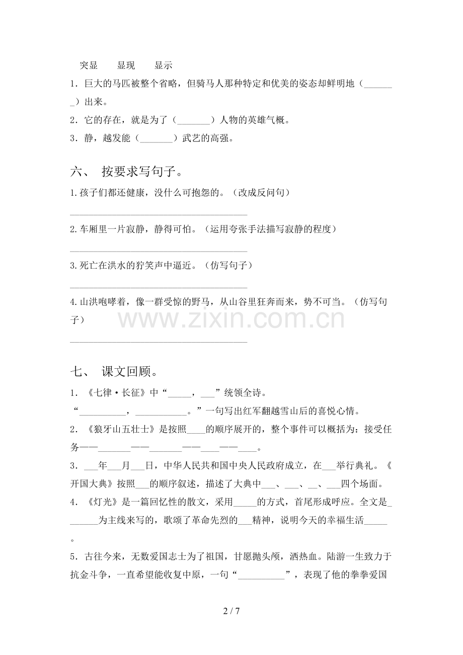 1.《七律·长征》中“_____,___”统领全诗。 “__________,___________。”一句写出红军翻越雪山后的喜悦心情。
