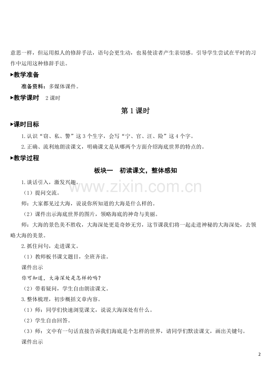 (1)师:同学们快速浏览课文,说说大海深处有什么。