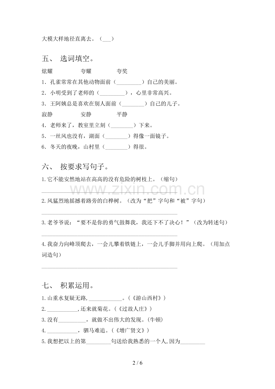 6、它不能站在树枝上。 风猛烈地把路旁的白桦树摇撼着。 路旁的白桦树被风猛烈地摇撼着。 老爷爷说,要不是我的勇气鼓舞他,他还下不了决心哩。 小花猫一会儿跳上桌子,一会儿跑到院子里玩耍,可爱极了