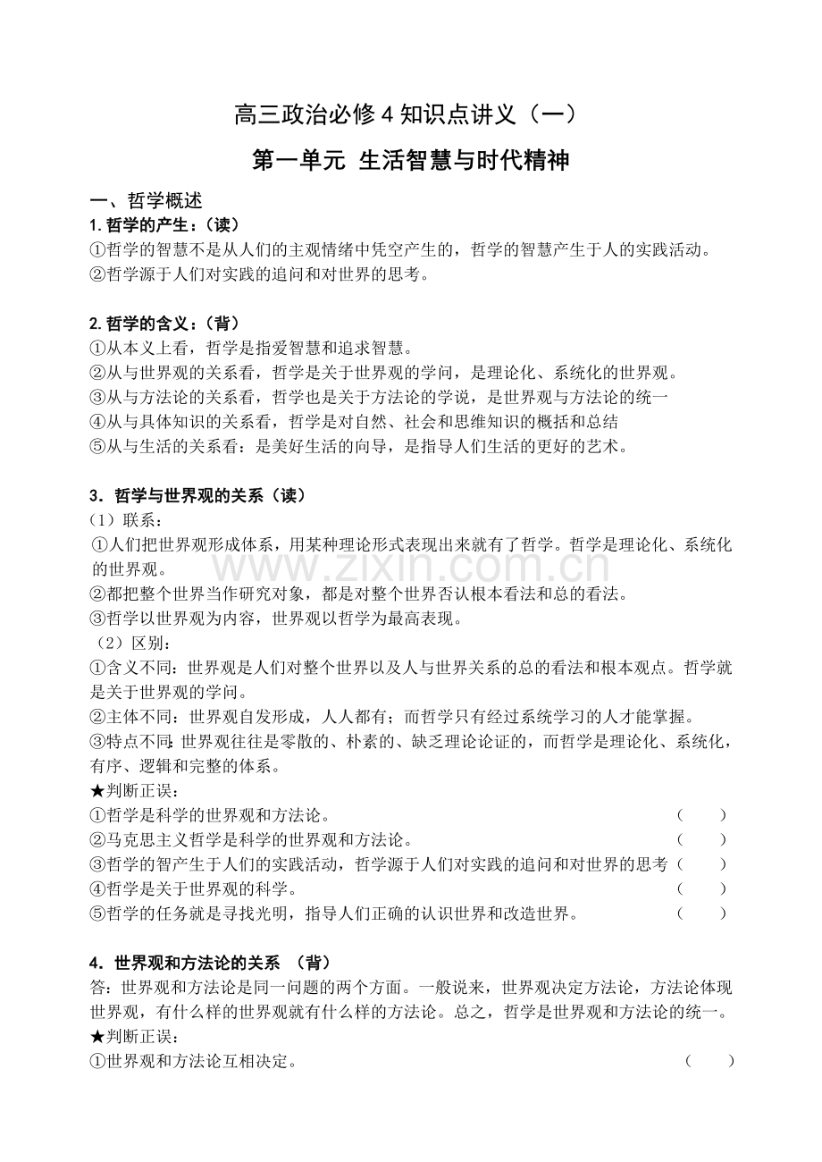 ★注意:①马克思主义哲学中国化的过程中产生了毛泽东思想,形成了中国特色社会主义理论体系(最新成果)。包括邓三科。