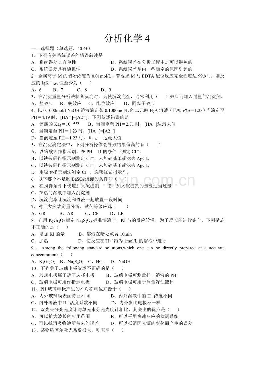 5、在沉淀滴定法中,下列分析操作会导致结果偏高的有( )