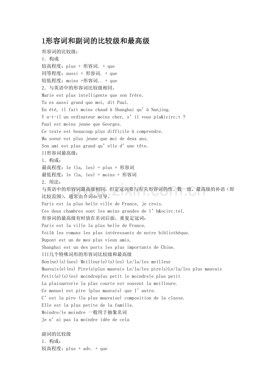 与英语中的形容词最高级相同,但定冠词要与有关形容词的性、数一致,最高级的补语(即比较范围),通常由介词de引导。