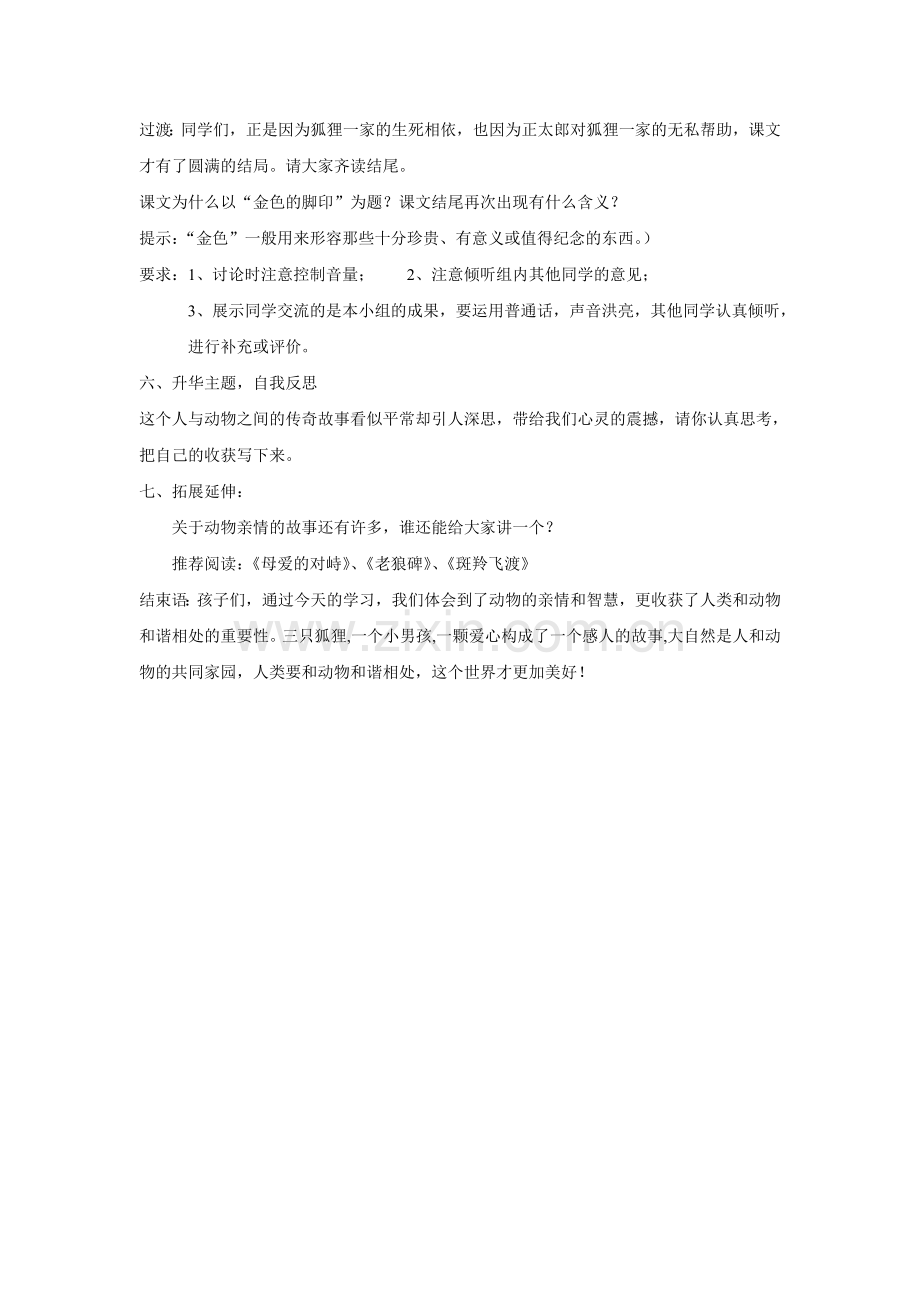 结束语:孩子们,通过今天的学习,我们体会到了动物的亲情和智慧,更收获了人类和动物和谐相处的重要性。三只狐狸,一个小男孩,一颗爱心构成了一个感人的故事,大自然是人和动物的共同家园,人类要和动物和谐相处,这个世界才更加美好!
