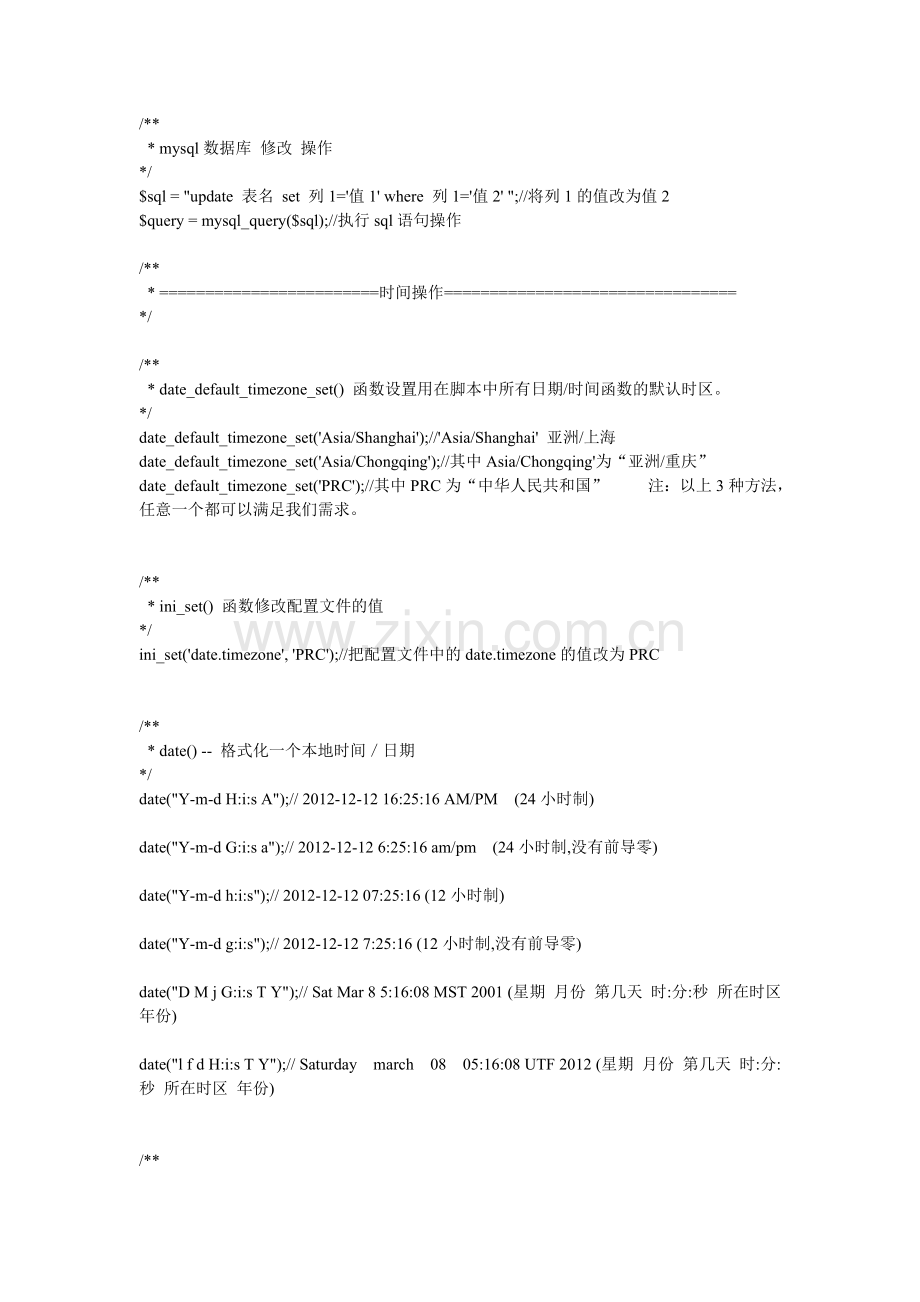 * date_default_timezone_set() 函数设置用在脚本中所有日期/时间函数的默认时区。