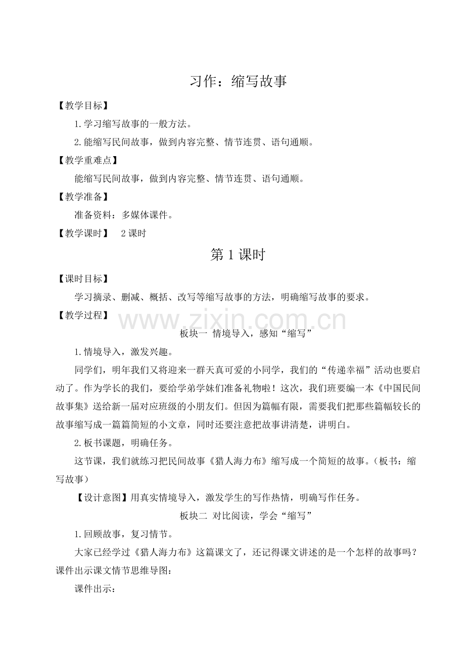 1.运用摘录、删减、概括、改写等缩写方法,提取故事主要信息,完成习作。