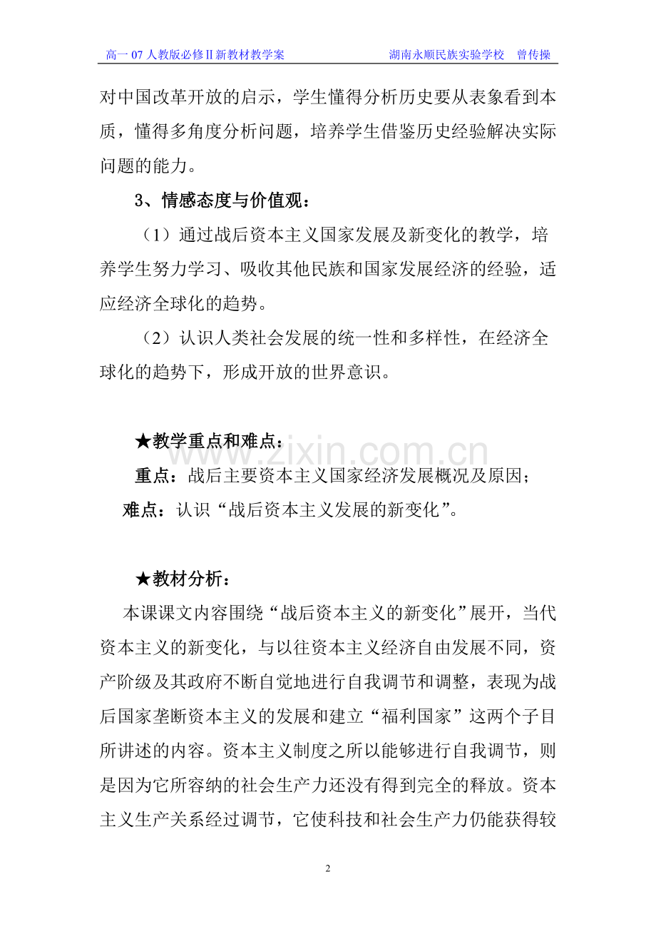 (1)通过战后资本主义国家发展及新变化的教学,培养学生努力学习、吸收其他民族和国家发展经济的经验,适应经济全球化的趋势。