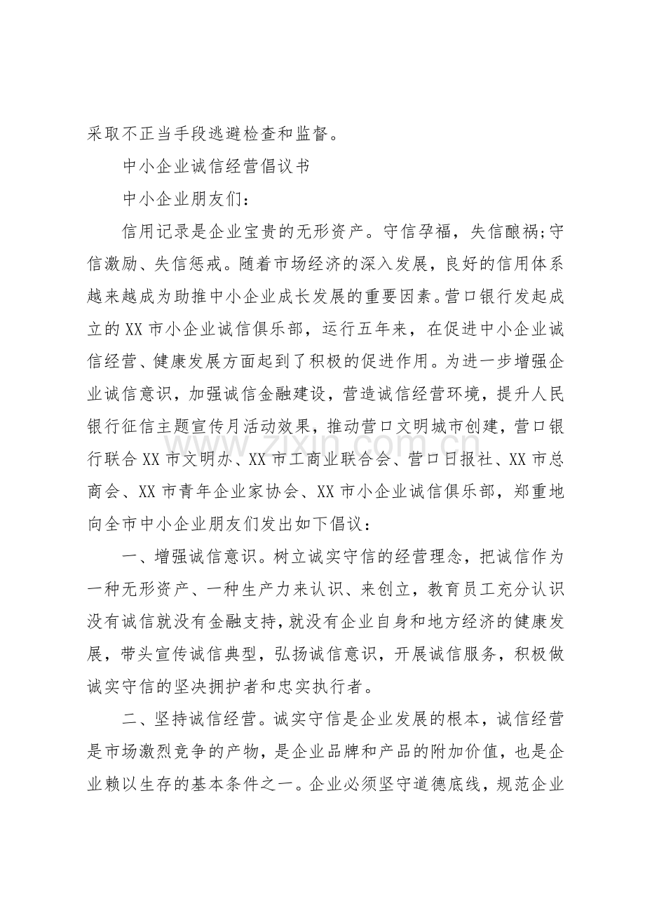 信用记录是企业宝贵的无形资产。守信孕福,失信酿祸;守信激励、失信惩戒。随着市场经济的深入发展,良好的信用体系越来越成为助推中小企业成长发展的重要因素。营口银行发起成立的XX市小企业诚信俱乐部,运行五年来,在促进中小企业诚信经营、健康发展方面起到了积极的促进作用。为进一步增强企业诚信意识,加强诚信金融建设,营造诚信经营环境,提升人民银行征信主题宣传月活动效果,推动营口文明城市创建,营口银行联合XX市文明办、XX市工商业联合会、营口日报社、XX市总商会、XX市青年企业家协会、XX市小企业诚信俱乐部,郑重地向全市中小企业朋友们发出如下倡议: