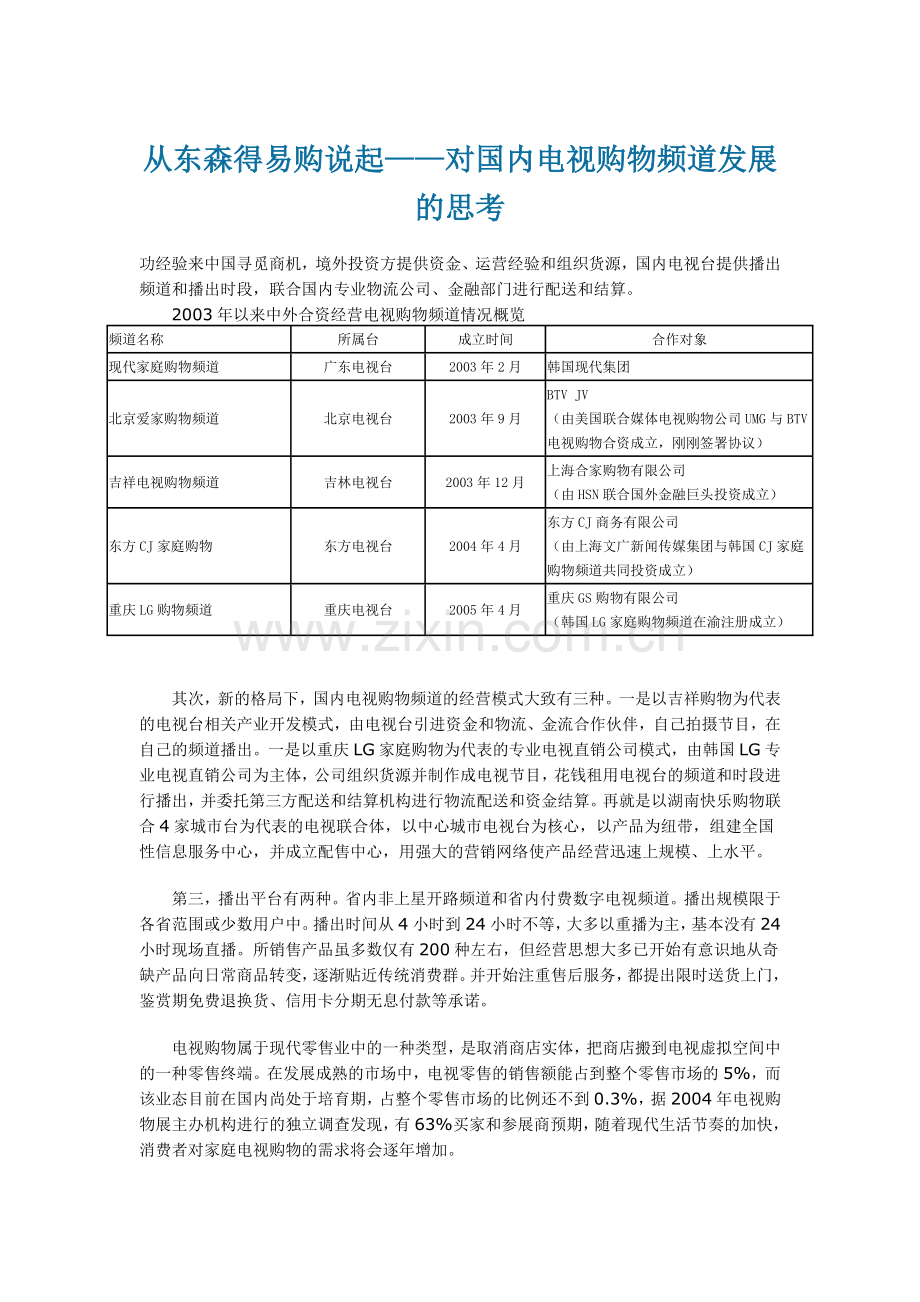 功经验来中国寻觅商机,境外投资方提供资金、运营经验和组织货源,国内电视台提供播出频道和播出时段,联合国内专业物流公司、金融部门进行配送和结算。