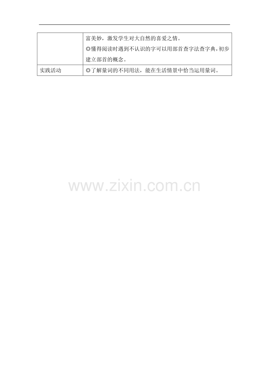 1.正确朗读课文。初步感受场景展示的美丽景色,了解不同事物量词的不同表达。