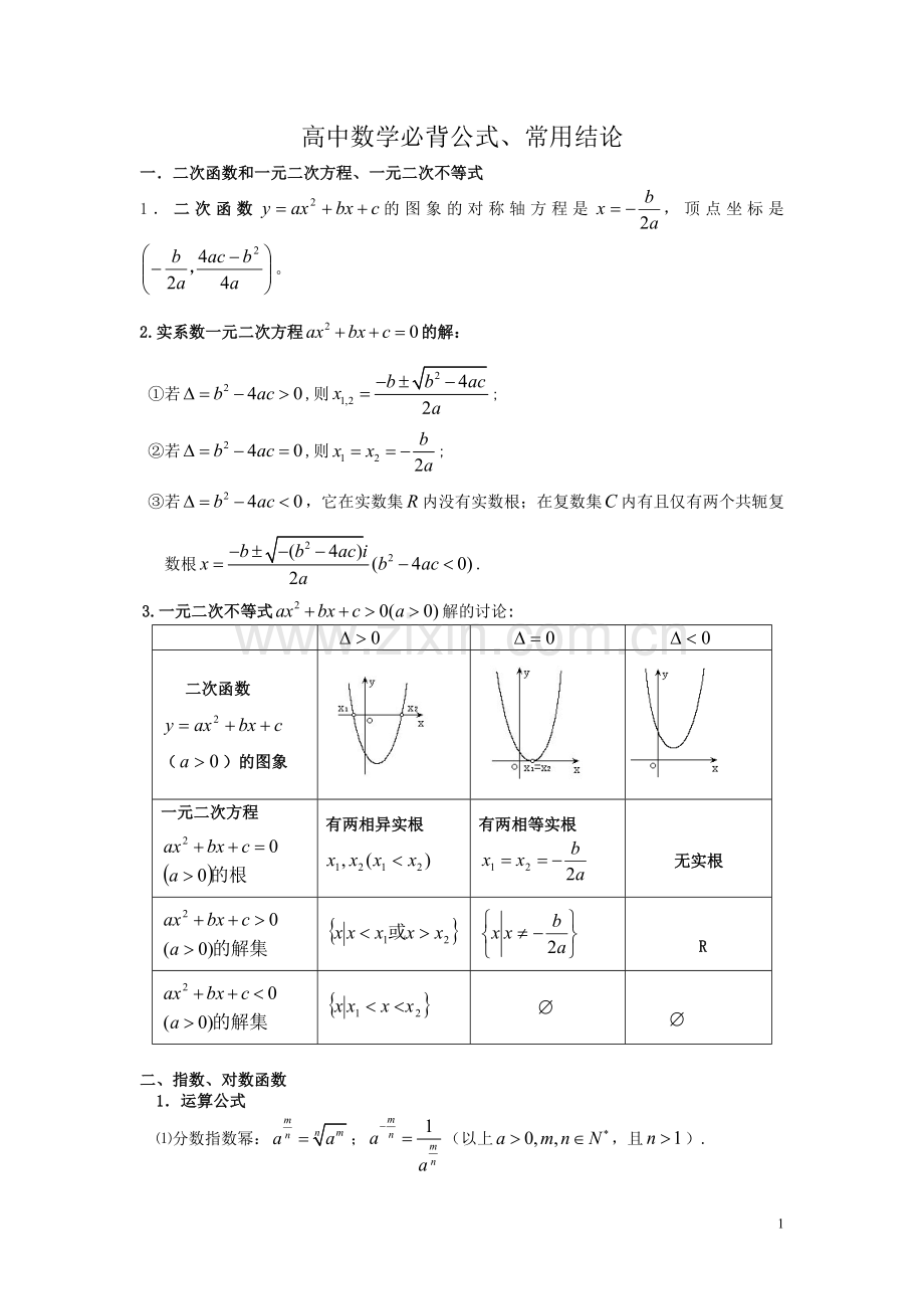 ③若,它在实数集内没有实数根;在复数集内有且仅有两个共轭复数根.