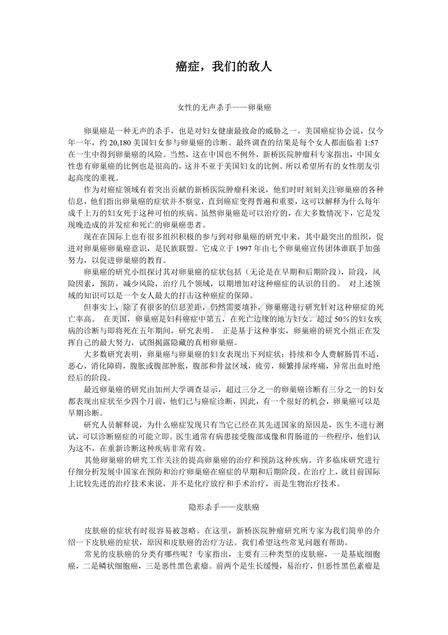 癌症,我们的敌人