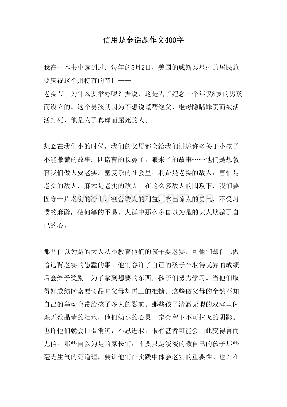 信用是金话题作文400字