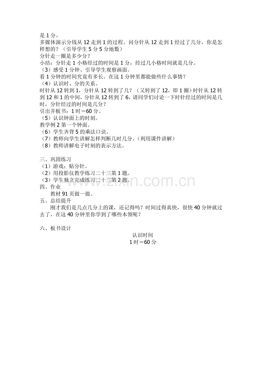 (4)认识时、分的关系。