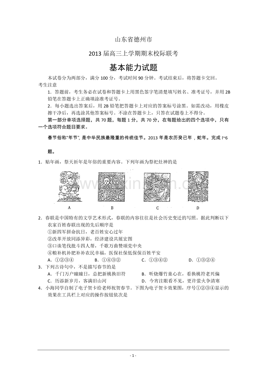 春节俗称“年节”,是中华民族最隆重的传统佳节。2013年是农历癸已年,蛇年。完成l~6题。
