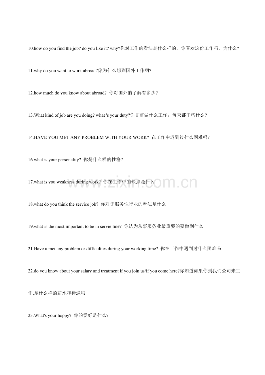 10.how do you find the job? do you like it? why?你对工作的看法是什么样的,你喜欢这份工作吗,为什么?