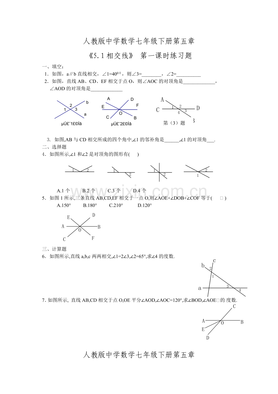 2.如图,直线AB、CD、EF相交于点O,则∠AOC的对顶角是_____________,