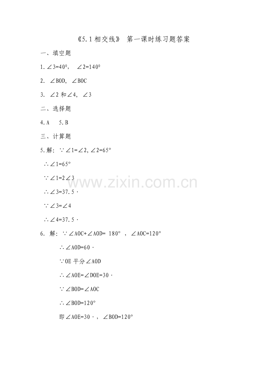 7.如图所示, 直线AB,CD相交于点O,OE平分∠AOD,∠AOC=120°,求∠BOD,∠AOE的 度数.
