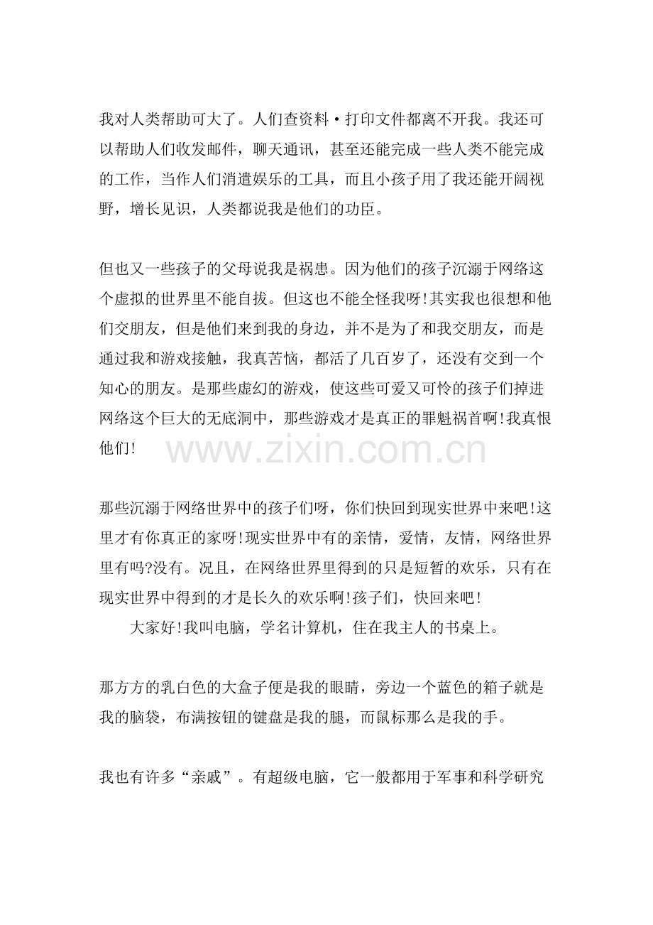 我有一个主机、鼠标、显示屏和键盘组成。我的用处很多:打游戏、看电视、搜资料、打文件……一切功能应有尽有,是许多成年人、小孩子的最爱。不过,我是一把双刃剑,我的身体也有许多不益之处,比方:一些辐射性病毒、游戏……等等,让我成了伤害人类的罪魁祸首。假假设让我联不上网,网页无法翻开,急需要文件的人心急如焚。