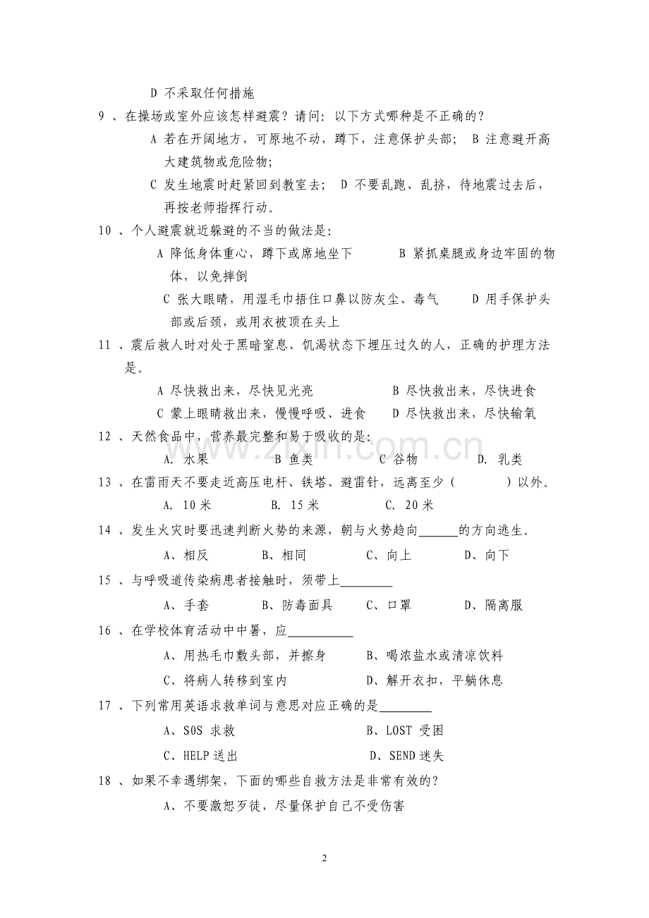 2 、下列关于溺水 救护的知识,哪点是正确的 。
