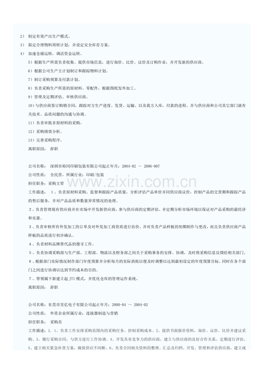 1. 丰富的采购管理经验,包括采购计划、供应商开放、成本控制、品质控制和库存管理。